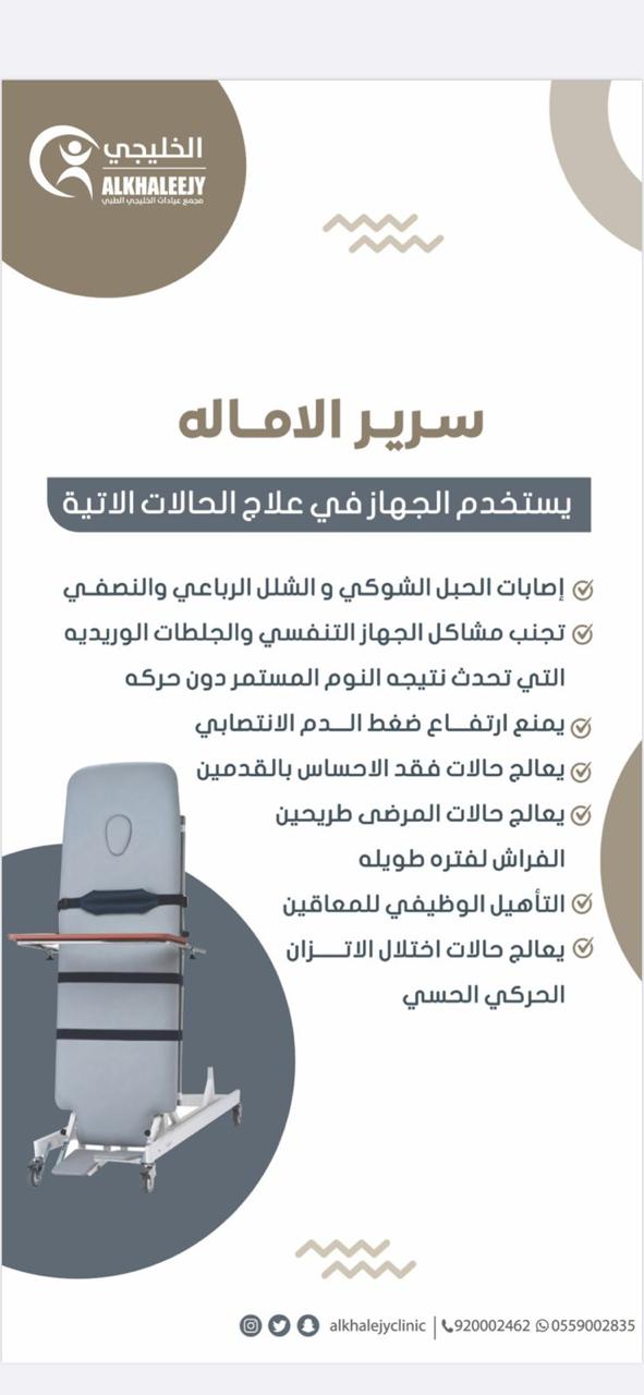 يستخدم سرير الامالة في علاج التالي : اصابات الحبل الشوكي الشلل...